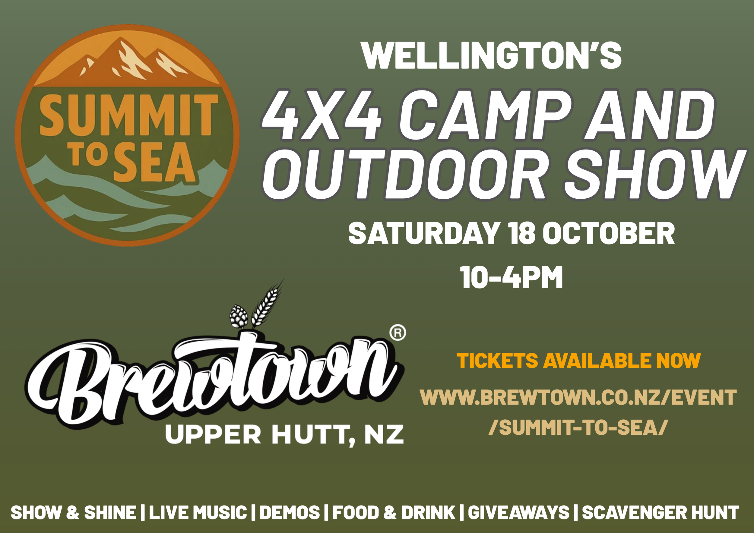 Buckle up, Wellington — this is more than a car show. Summit to Sea is the BIGGEST 4x4, camping, and outdoor lifestyle event in the region. One epic day, packed with rigs, gear, prizes, music, food, and a whole lot of adventure energy.